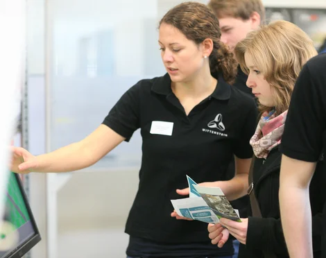 Auszubildende und Studierende der WITTENSTEIN SE informieren am 29. April 2017 über Berufe und Bildungswege. (Die Fotos entstand bei Vorjahresveranstaltungen in der WITTENSTEIN talent arena.)