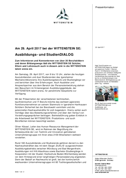 Am 29. April 2017 bei der WITTENSTEIN SE: Ausbildungs- und StudienDIALOG