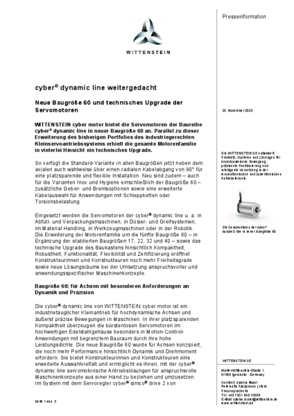 - Weitere Produktinformationen unter: https://cyber-motor.wittenstein.de/de-de/produkte/servomotoren/rotative-synchronmotoren/cyber-dynamic-motor-buerstenloser-servomotor/