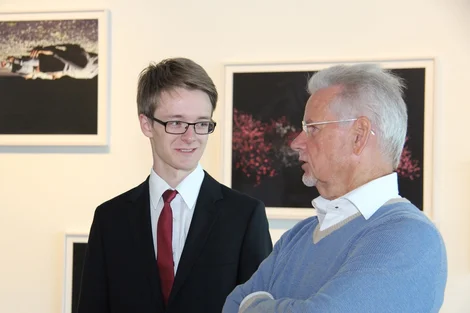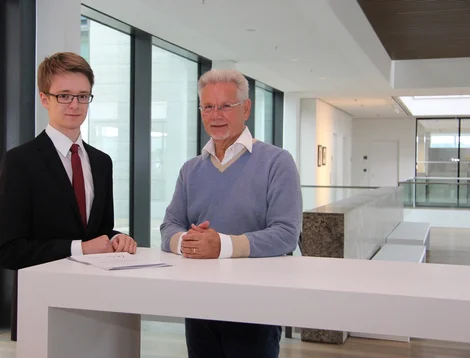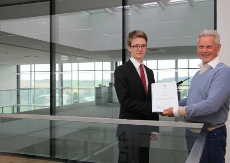 Julian Wiesler, 18-jähriger Abiturient aus Bad Mergentheim, ist Preisträger des WITTENSTEIN-Stipendiums 2016 – hier mit Dr. Manfred Wittenstein, Aufsichtsratsvorsitzender der WITTENSTEIN AG, in der Innovationsfabrik in Igersheim-Harthausen.