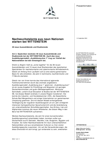 Am 2. September starteten 49 neue Auszubildende und Studierende bei der WITTENSTEIN SE. Auch das neue Ausbildungsmodell „Ausbildung plus 1“ trug zur Vielfalt der Nationalitäten bei den Einsteigern bei.
