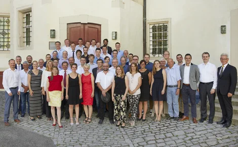 Bild 1: Alle Jubilare und Rentner der WITTENSTEIN SE gemeinsam mit Vorstand, Personalleitung, Betriebsratsvorsitzendem und Aufsichtsratsvorsitzendem Dr. Manfred Wittenstein