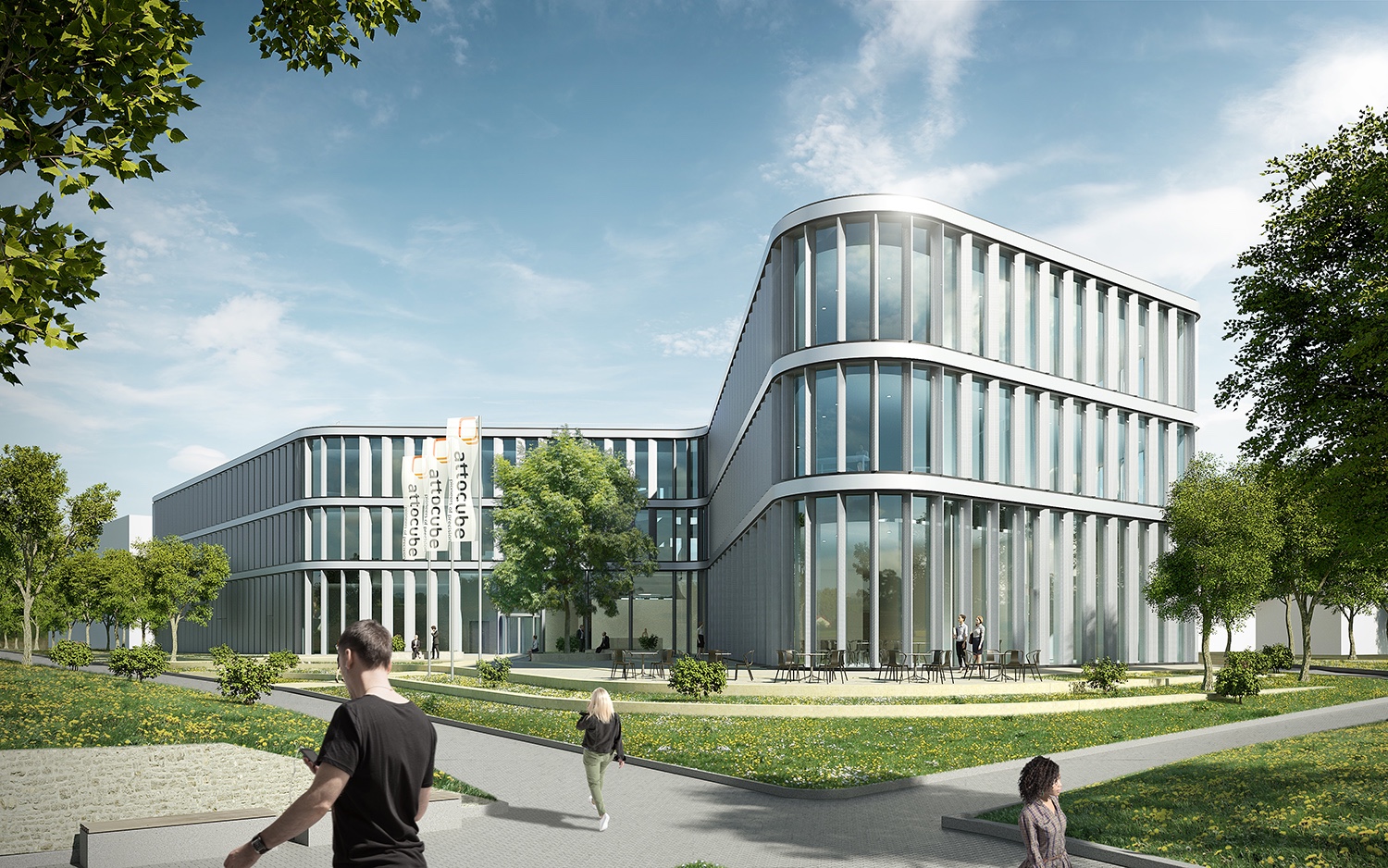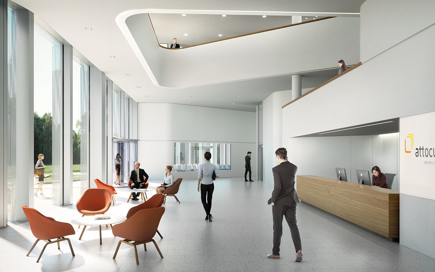 Rund 20 Millionen Euro investiert die Unternehmensgruppe in den neuen Firmensitz der attocube systems AG; umgesetzt wird der architektonisch anspruchsvolle Neubau auf dem 5.720 m² großen Grundstück durch die ebenfalls in München ansässigen HENN Architekten. „Das neue Gebäude bietet die Chance, es nach unseren Bedürfnissen zu gestalten, bisherige Arbeitsweisen neu zu definieren und damit einen Ort zu schaffen, der attocube repräsentiert und mit dem sich jeder Mitarbeiter identifizieren kann“, so Vorstand Dr. Martin Zech.