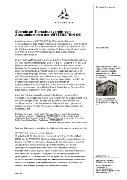Spende an Tierschutzverein von Auszubildenden der WITTENSTEIN SE