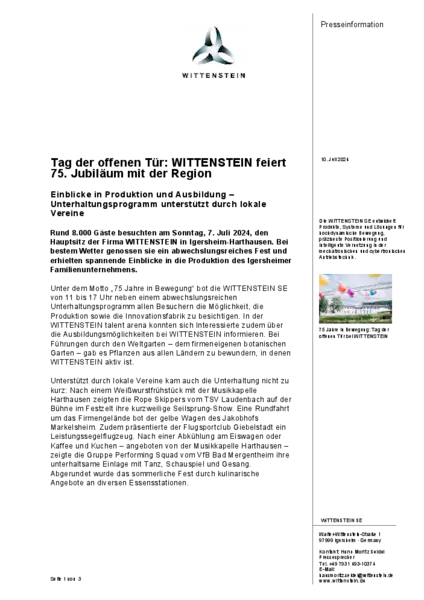 Tag der offenen Tür: WITTENSTEIN feiert 75. Jubiläum mit der Region