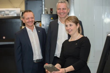 01 Einweihung am 23.01.2020: (von links nach rechts): die beiden Geschäftsführer der WITTENSTEIN AG Schweiz Gerhard Horn und Oliver Kössel sowie Dr. Anna-Katharina Wittenstein (Vorstand der WITTENSTEIN SE)