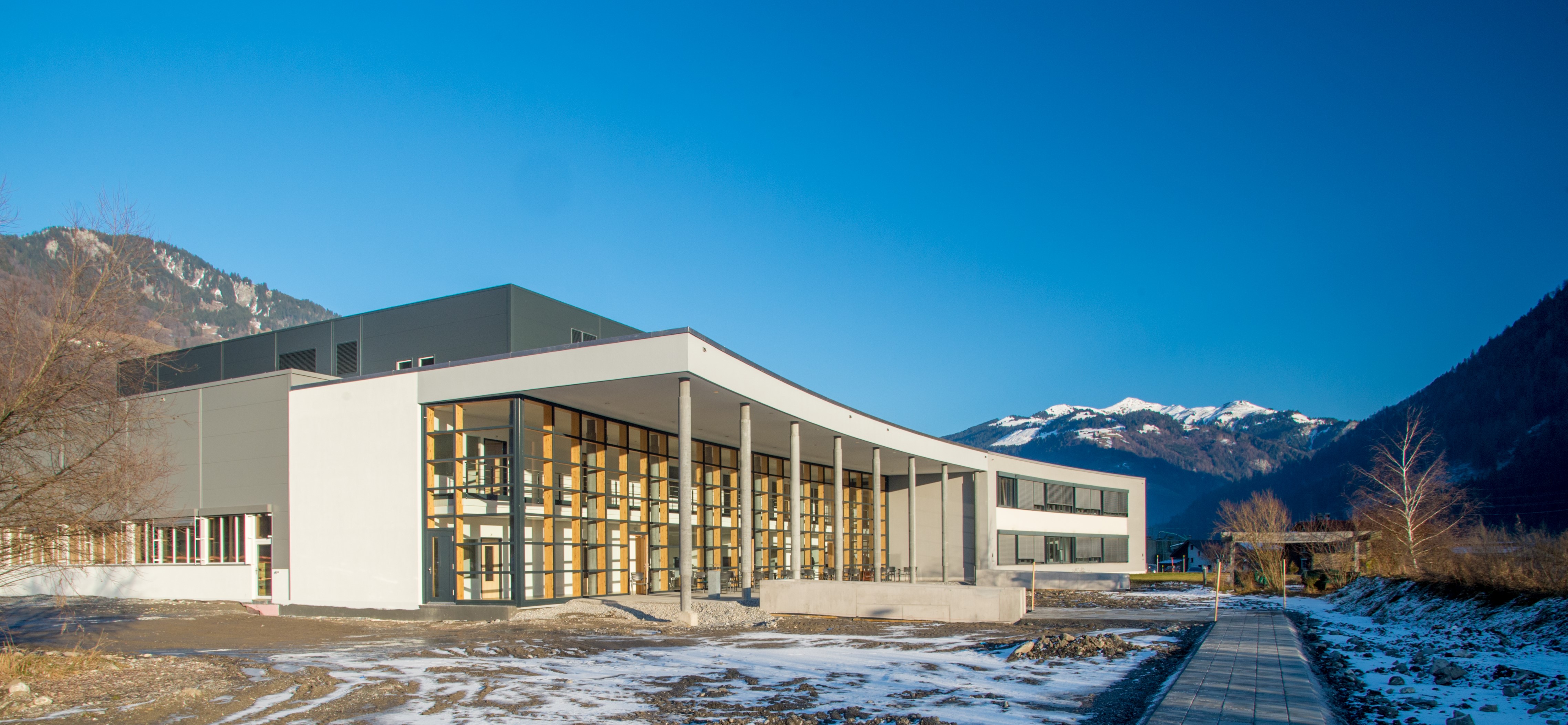 Der gesamte Gebäudekomplex in der Trutwisstrasse 1 am Standort in Grüsch besteht aus insgesamt drei Bauetappen mit einer Gesamt-Grundstücksfläche von ca. 10.000 qm und folgt in seinem Erscheinungsbild einem konsequent durchdachten, modernen Baustil. Während im Jahre 2010 der erste Bauabschnitt mit einem Bürotrakt und einer Produktionshalle realisiert wurde, wurde nun im zweiten Bauabschnitt primär der Realisierung von weiteren Wertschöpfungsflächen eine hohe Beachtung geschenkt.