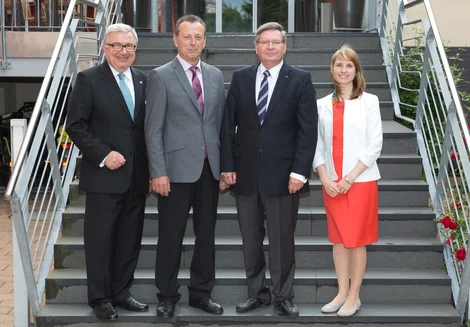 2. Für ihre 50-jährige Betriebszugehörigkeit geehrt: Alfred Sambeth (2. von links) und Klaus Spitzley (2. von rechts) zusammen mit Vorstandsvorsitzendem Prof. Dr.-Ing. Dieter Spath (links) und Dr. Anna-Katharina Wittenstein (Mitglied des Vorstands).