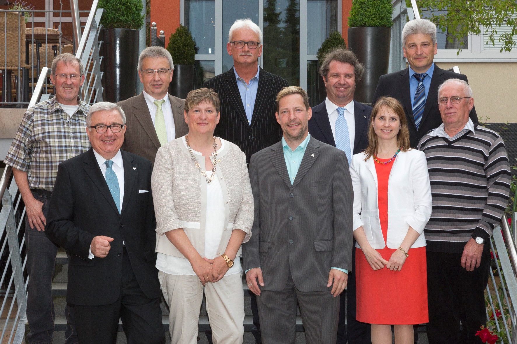 1. Die 25er Jubilare und Rentner der WITTENSTEIN AG mit Vorstand: (hintere Reihe von links nach rechts): Karl-Martin Betz, Thomas Melzer, Markus Wehle, Didier Vochelet, Harald Krummrein; (vordere Reihe von links nach rechts): Vorstandsvorsitzender Prof. Dr.-Ing. Dieter Spath, Isolde Veit, Alexander Kemmer, Dr. Anna-Katharina Wittenstein (Mitglied des Vorstands) und Waldemar Neetzel.