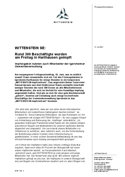 WITTENSTEIN SE: Rund 300 Beschäftigte wurden am Freitag in Harthausen geimpft