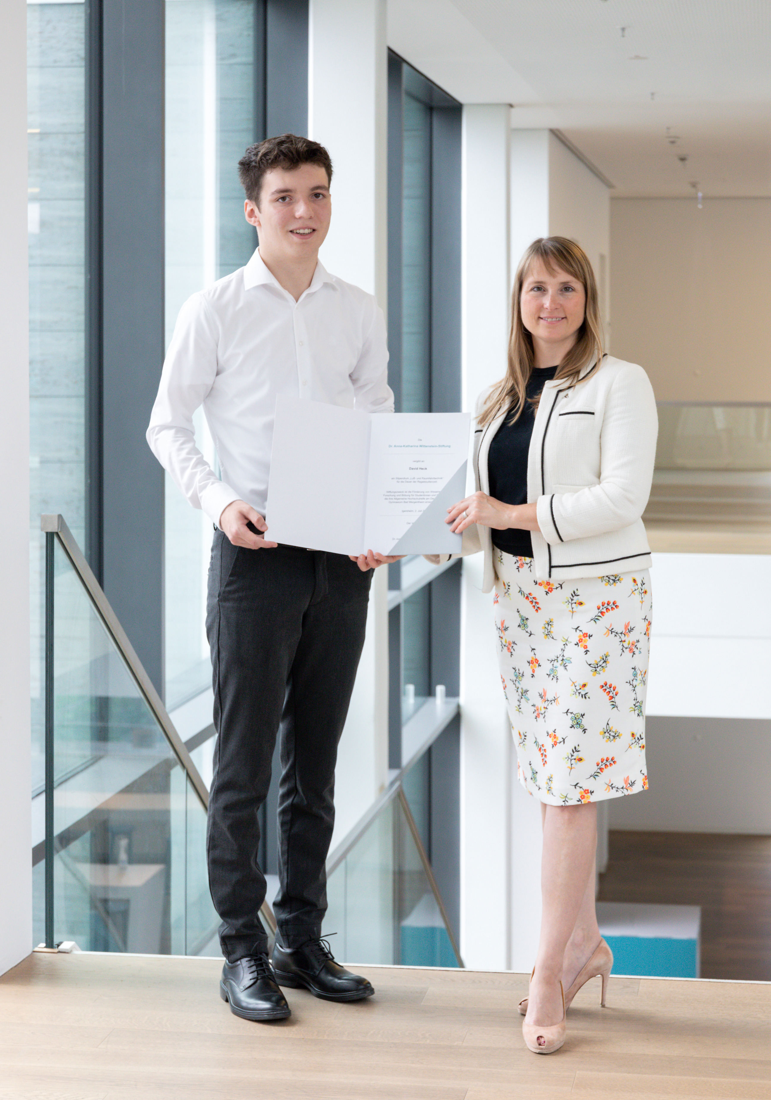 Für einen vielseitig interessierten und zudem sowohl naturwissenschaftlich als auch sprachliche überaus begabten jungen Mann hat sich die Jury der Stiftung in diesem Jahr entschieden, um ihn für die Dauer der Regelstudienzeit mit einer monatlichen „Finanzspritze“ zu unterstützen: Höchste oder sehr hohe Punktzahlen nicht nur in Mathe, Physik oder Chemie, sondern auch in Englisch und Deutsch hatte der 17-jährige David Heck „zu bieten“ – aber er war auch Ministrant, spielt Trompete in einer Musikkapelle und Fußball in der A-Jugend.