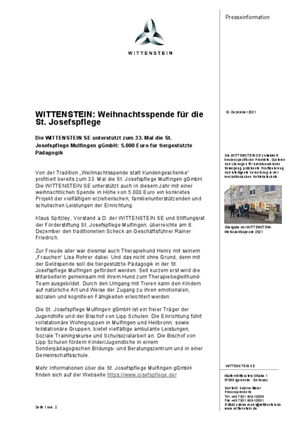 WITTENSTEIN: Weihnachtsspende für die St. Josefspflege