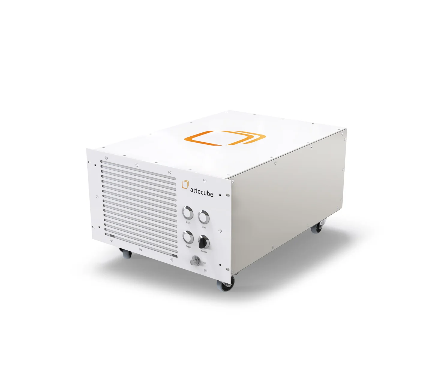 attocube offers closed-cycle cryostats, compact compressors, and scanning probe microscopes tailored for low-temperature applications. These systems are essential for quantum technology, material science, and nanostructure analysis. attocube’s cryogenic platforms combine efficiency and mobility, making them ideal for both laboratory and industrial settings. A key innovation is the IGLU compressor, the world’s first helium compressor designed for integration into standard 19-inch racks. It enables cryogenic operation below 4 K without the need for complex infrastructure such as cooling water or high-voltage power lines.