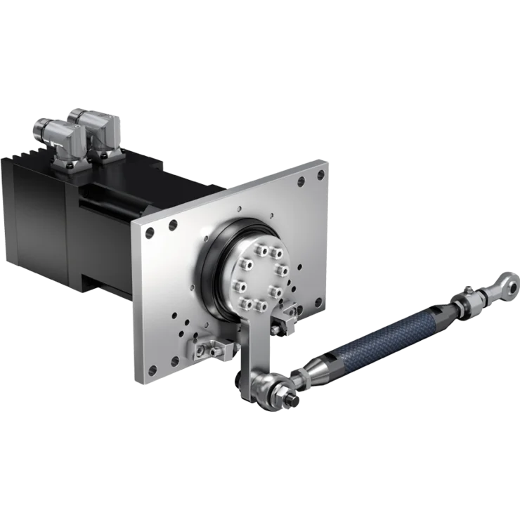 The WITTENSTEIN turnkey inline electromechanic control loading solutions drive the pilot controls via mechanical linkages and provide a compact and integrated actuator, sensor and software system for all levels of simulators. A range of actuators is offered to drive the pilot control linkages directly with inline or flange mounted force sensors.