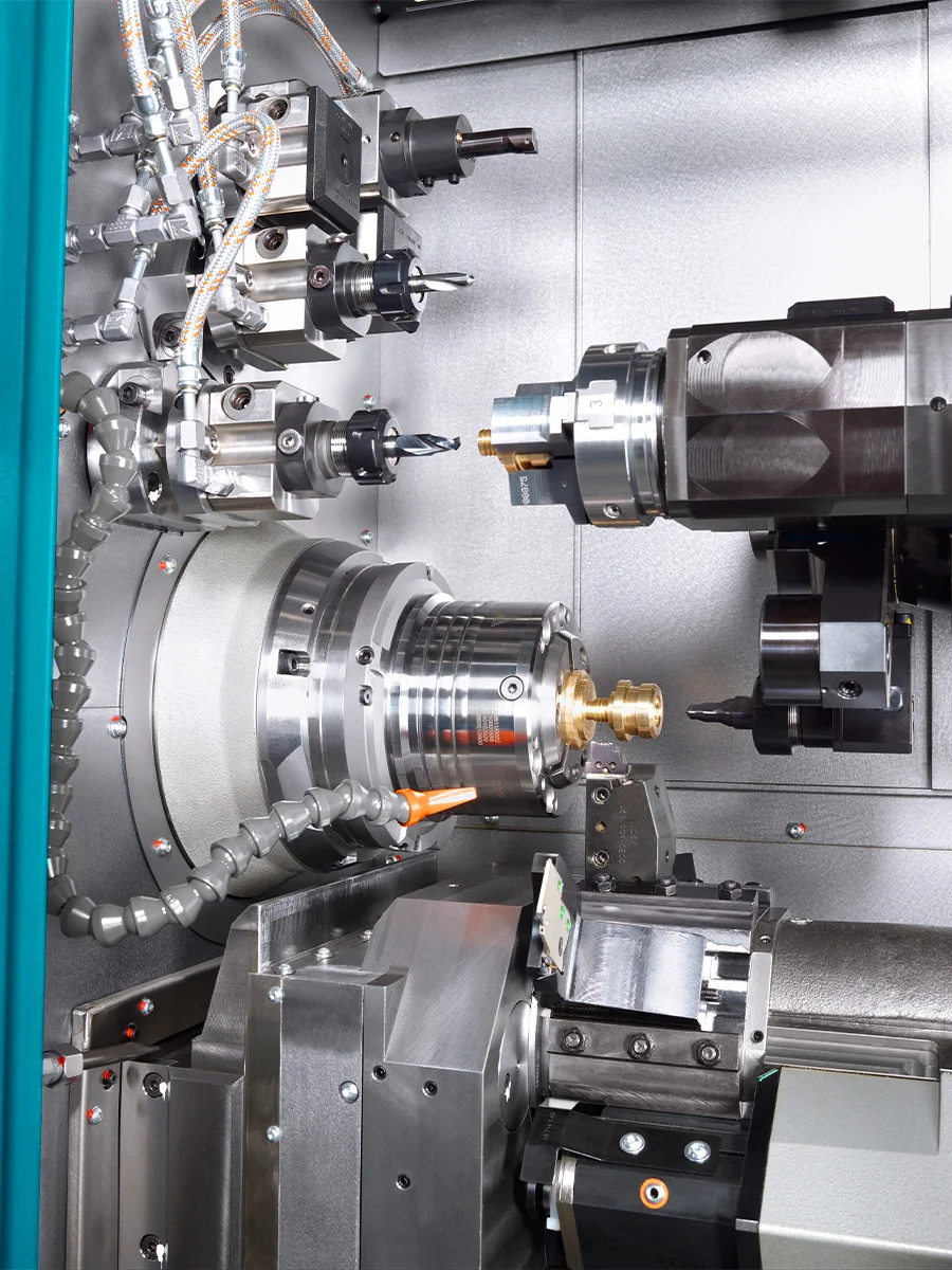 The impact of the Galaxie is remarkable: the upper turret can now be positioned steplessly with ultra‑high precision and enables interpolating machining across multiple axes—capabilities that were previously impossible with the old system.