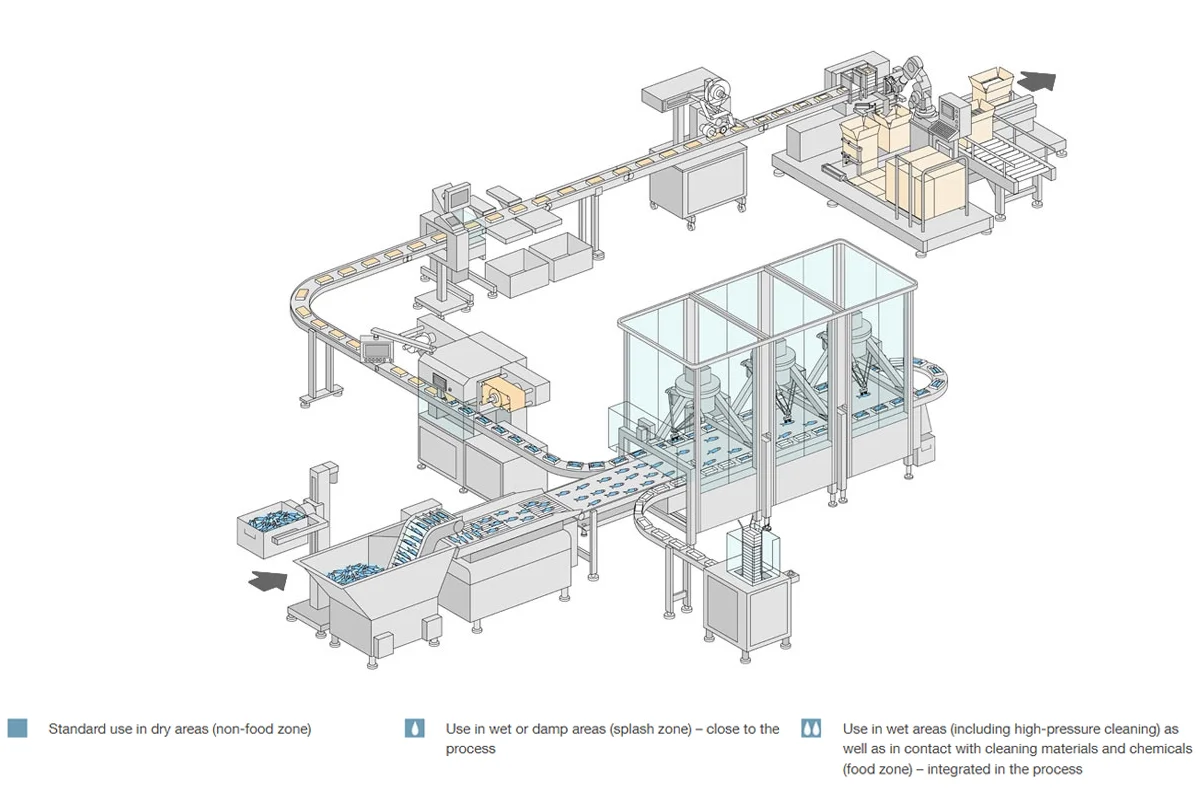Nuestras soluciones de accionamiento para el sector manufacturero establecen estándares en cuanto a precisión, dinámica e higiene, especialmente para aplicaciones exigentes en los sectores alimentario y farmacéutico.
