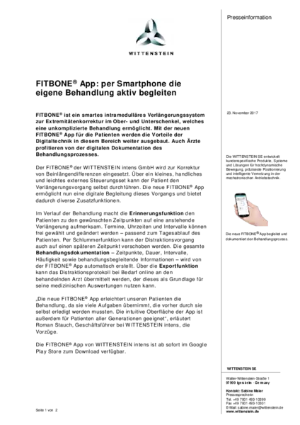 FITBONE® App: smartphone app lets patients actively accompany their treatment