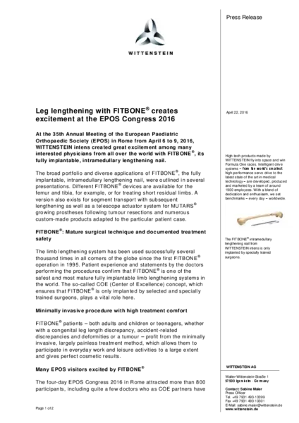 Leg lengthening with FITBONE® creates excitement at the EPOS Congress 2016