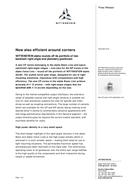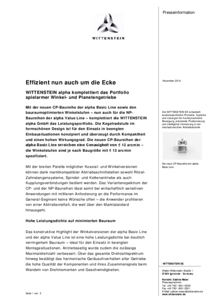 The new product generation of planetary and right-angle gearboxes in the alpha Basic Line is designed to provide solutions which are as cost-effective as possible for standard applications. The new generation of the CP series – with five different sizes, additional output variants and new bevel gear stages – combines ≤ 12 arcmin of torsional backlash in the coaxial version or 13 arcmin in the right-angle version with high application flexibility. New variants have likewise been developed in the CPS series, on the one hand with a replaceable B5 output flange and on the other with a long centering component – the only one of its kind in the market.