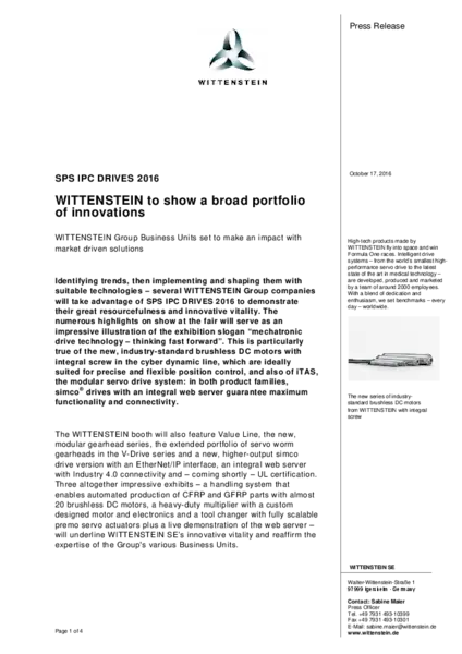 Invitation to the WITTENSTEIN SE press briefing at SPS IPC Drives 2016