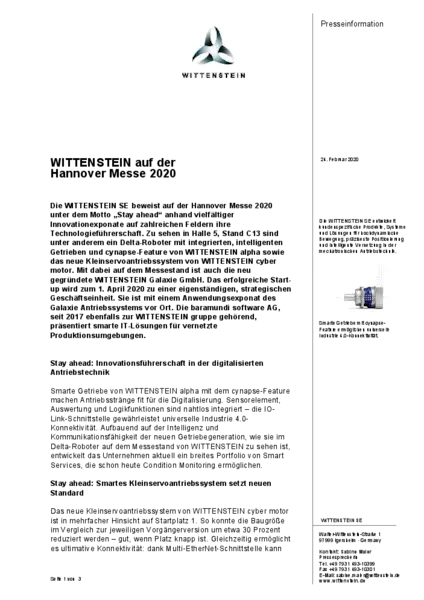 WITTENSTEIN at Hannover Messe 2020