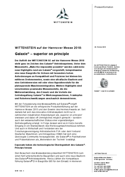 WITTENSTEIN at the Hannover Messe 2018: Galaxie® – superior on principle