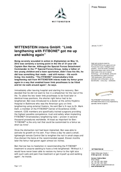 WITTENSTEIN intens GmbH: “Limb lengthening with FITBONE® got me up and walking again”