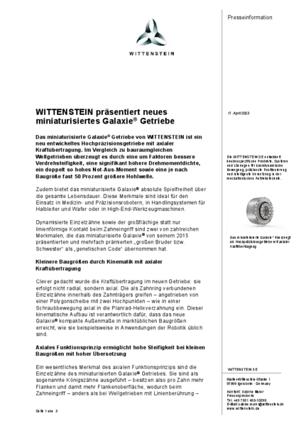 WITTENSTEIN presents new miniaturized Galaxie® gearbox