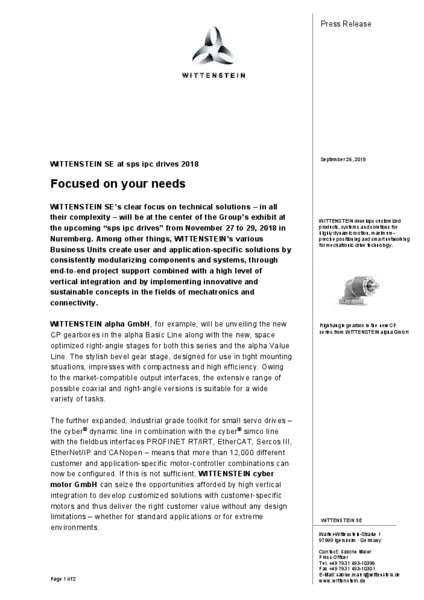WITTENSTEIN SE at sps ipc drives 2018 – Focused on your needs